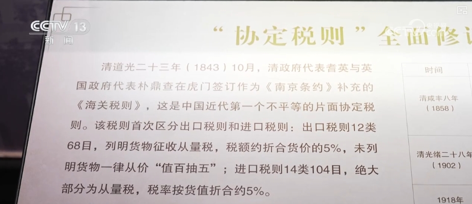粤海关博物馆办事队陈晓旋引见,从鸦片和平后到1929年,海关一曲施行的是全面的协定税则,协定税则也就是我们的税则和税率都要颠末外国人的同意和核准。反映了列强正在经济上对中国的侵略以及弱国无交际的现实环境。却被列强以“协定关税”之名商业从权,导致白银外流、财产凋谢。