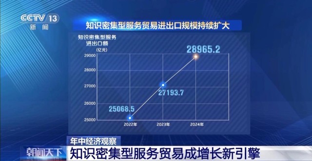 从2022到2024年,学问稠密型办事商业进出口规模持续扩大。2022年学问稠密型办事进出口额为25068。5亿元,2023年增加至27193。7亿元,2024年进一步攀升到28965。2亿元。值得关心的是,这三年间该范畴的增速均跨越6%。